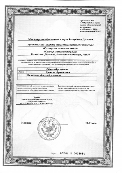 | Адрес местонахождения образовательной организации* | 368625, Республика Дагестан, Дербентский район,село Сегелер, ул.Санаторная,13 |